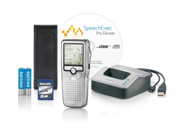 Um größtmögliche Kompatibilität zu bieten, verwendet Philips nicht-proprietäres Zubehör und Technologien wie SD (oder MMC)-Speicherkarten, Mini-USB-Kabel, Batterien, 3,5 mm Mikrofon- und Kopfhöreranschlüsse bis hin zum .dss-Dateiformat.