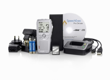 Um größtmögliche Kompatibilität zu bieten, verwendet Philips nicht-proprietäres Zubehör und Technologien wie SD (oder MMC)-Speicherkarten, Mini-USB-Kabel, Batterien, 3,5 mm Mikrofon- und Kopfhöreranschlüssen bis hin Erstelltungsdatum zum .dss-Dateiformat.