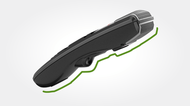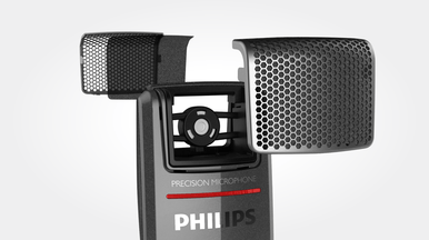 Die Entkopplung des Mikrofons vom Gehäuse garantiert die beste und klarsteAufnahmequalität, die je von einem stationären digitalen Diktiergerät erreicht wurde. Die komplett neu gestaltete Mikrofonaufhängung gewährleistet, dass so gut wie keine Hintergrundgeräusche, Griffgeräusche sowie Atem- und Klickgeräusche aufgenommen werden. Diese Technik entspricht jener von Studiomikrofonen und dient dazu, jede Art von Störung bei der Aufnahme zu verhindern – und damit erstklassige Spracherkennungsergebnisse zu erzielen.