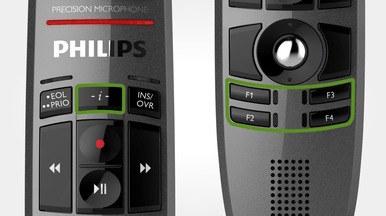 Das Philips SpeechMike Premium ist das heute fortschrittlichste Diktiermikrofon – und um den Benutzern sogar noch mehr Möglichkeiten zur Personalisierung des Gerätes zu geben, hat Philips eine Anweisungstaste im oberen Bereich des Bedienfeldes hinzugefügt. Diese kann vom Nutzer frei konfiguriert werden, was besonders nützlich für die Programmierung von Spracherkennungsbefehlen ist.