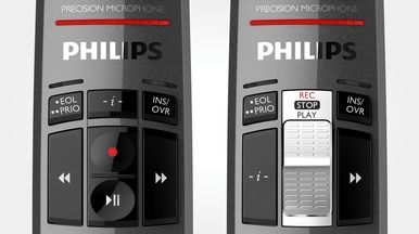 Das technologisch fortgeschrittene Philips SpeechMike Premium verfügt über einen integrierten Bewegungssensor, der ihn zum ersten stationären Diktiergerät macht, das durch eine Handbewegung gesteuert werden kann. Es erkennt, wenn es abgelegt wird, stellt das Mikrofon stumm, und sobald es wieder aufgenommen wird, wird das Mikrofon wieder aktiviert. Diese Funktion kann in zahlreichen Situationen von großem Vorteil sein, z.B. wenn Sie während der Aufnahme einen Anruf erhalten oder wenn jemand Ihr Büro betritt. Zudem können personalisierte Ereignisse programmiert werden, z.B. zur Unterbrechung und Fortführung der Aufnahme.